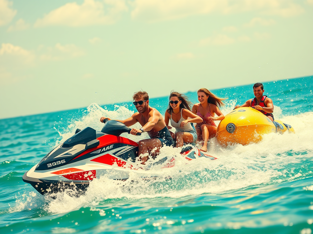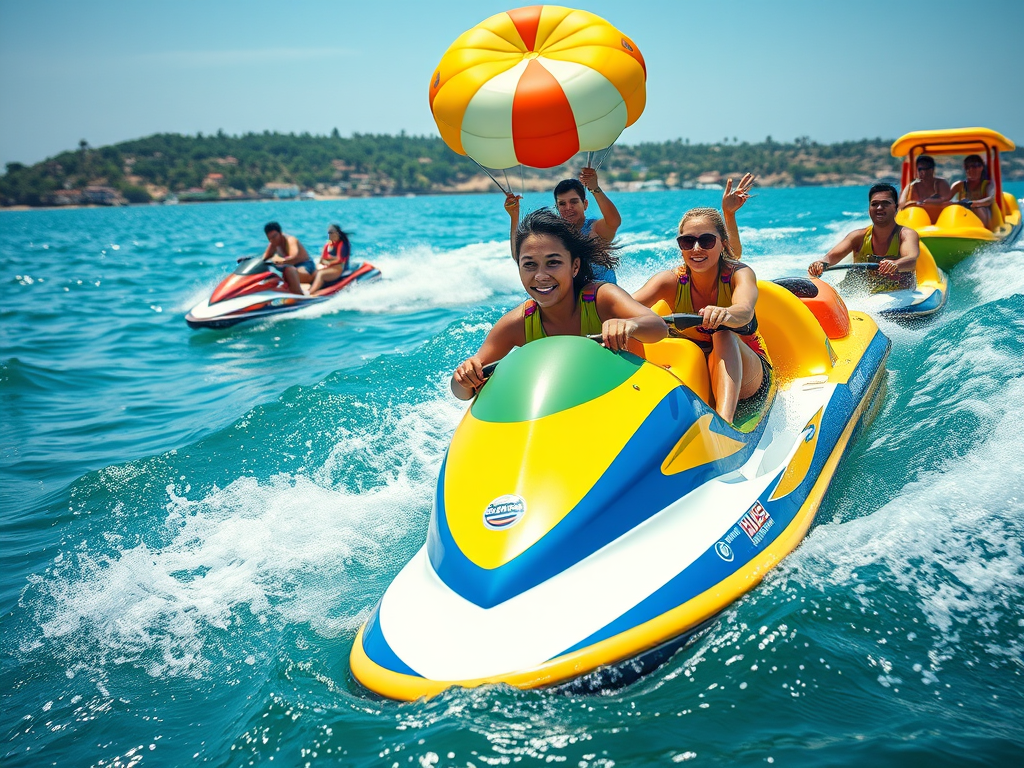 • Jetski Ride: Feel the thrill as you speed across the water on a Jetski.