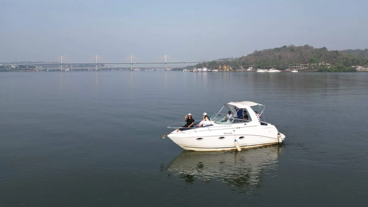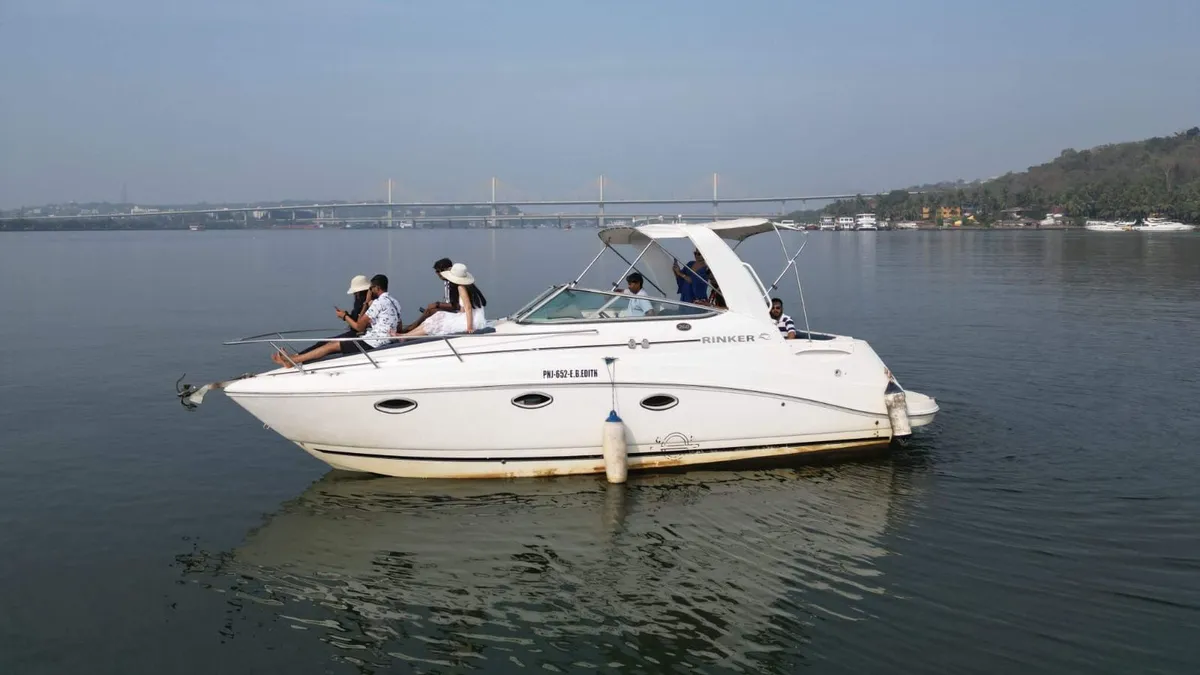 Sail in style aboard the 26-ft Rinker Yacht as you glide along the serene waters of Goa’s Mandovi River. With panoramic views of Panjim city, historic forts, and the Arabian Sea, this luxury private cruise is perfect for intimate celebrations, family outings, or simply unwinding with friends.